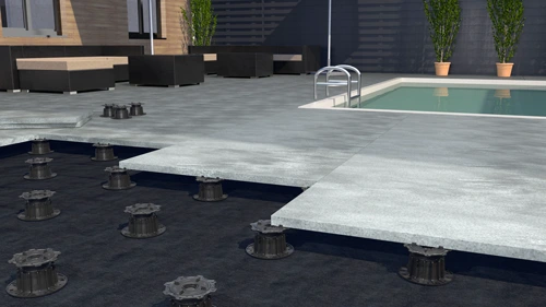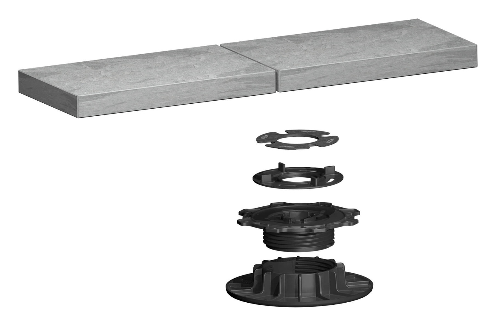 Piedestalurile reglabile EUROTEC GIANT S sunt concepute special pentru montajul uscat al dalelor de dimensiuni mari din beton sau ceramică. Aceste suporturi de înaltă calitate sunt ideale pentru terase, acoperișuri și alte suprafețe exterioare, unde este necesară o capacitate portantă ridicată și o stabilitate excelentă.