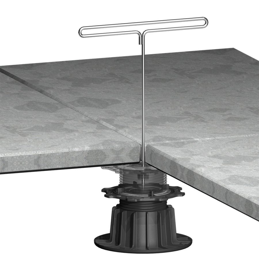 Modelul GIANT se remarcă prin rezistența sa excepțională – suportă o sarcină de până la 2200 kg. Fiecare piedestal are încorporată o garnitură din cauciuc, care atenuează zgomotul la mers și contribuie la protecția dalelor. Înălțimea se reglează precis cu ajutorul unui inel lateral sau a unei chei de reglaj de sus (disponibilă separat ca accesoriu).