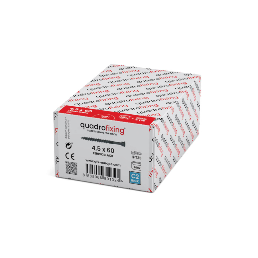 TERRIX BLACK este un șurub negru din oțel inoxidabil, ideal pentru montajul profesional al fațadelor și placărilor din lemn. Fabricate din oțel inoxidabil C2 călit și pasivat, șuruburile oferă protecție excepțională împotriva coroziunii datorită finisajului special negru, menținând în același timp un aspect elegant și modern.