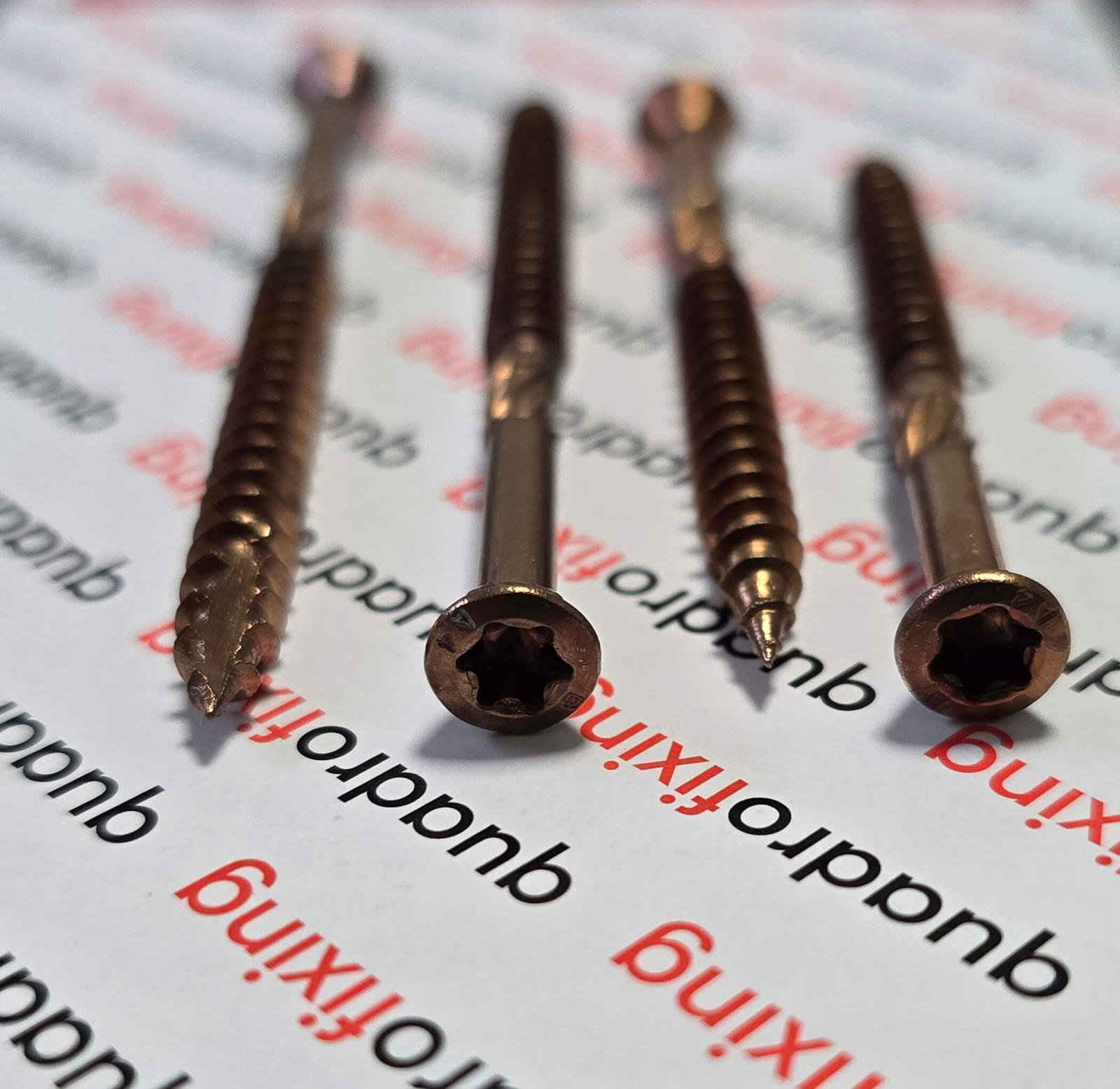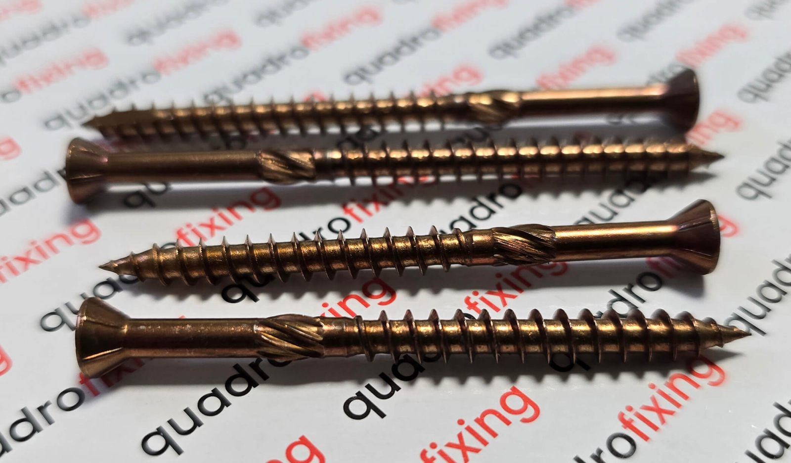 Șuruburile de terasă din oțel inoxidabil A4 sunt concepute pentru montarea plăcilor de terasă și a structurilor din lemn în exterior. Suprafața antik light este creată printr-un proces de oxidare(arsă), care produce o nuanță de suprafață maro-bronz-galben; rezistența la coroziune este asigurată chiar de materialul A4.